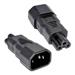 Napájecí adaptér v černém provedení pro notebook, na vstupu konektor IEC C14 male a na výstupu "trojlístek" nebo "Mickey mouse" IEC C5 female.