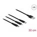 Tento nabíjecí kabel „tri v jednom“ znacky Delock lze používat k nabíjení zarízení jako napr. tabletu nebo inteligentních telefonu s rozhraním Lightning™, Micro USB-B nebo USB Type-C™ z napájecího zdroje USB.