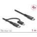 Tento nabíjecí kabel „čtyři v jednom“ značky Delock lze používat k nabíjení zařízení jako např. tabletů nebo inteligentních telefonů s rozhraním Lightning™, Micro USB-B nebo USB Type-C™ z napájecího zdroje USB.