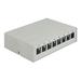 This patch panel by Delock can be used as a junction box on the wall or in enclosures. Additionally, clips for DIN rail mounting are included. With its standardized dimensions, it is suitable for easy snap-in mounting of eight Keystone modul