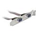 This Delock slot bracket can be installed into a free slot of your PC and enables you to lead out two internal COM ports in order to connect 2 external serial devices.