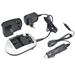 Balení obsahuje: nabíjecí základnu, redukci AVP, síťový adaptér na 100 - 240V, 12V autoadaptér do zapalovače, návod k použití.