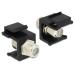 Tento modul od Delocku může být použit pro prodloužení F (např.koaxiálního TV) připojení. Díky standardním rozměrům může být použit pro snadnou montáž do patch panelu, čelního panelu nebo montážního boxu.