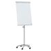 "Flipchart s ocelovou magnetickou tabulí pro suché mazání, umístěný na trojnohém stativu, vybavený integrovanou poličkou na fixy. Nohy stativu mají nastavitelnou výšku až do 188 cm a lze je zcela zasunout pro snadné skladování nebo přenášení. Součástí bal...