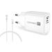 CONNECT IT DUPLEX Nabíjecí adaptér 1xLightning + 1×USB-C, 20W, kabel 27W, BÍLÝ