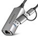 Kompaktní hliníkový USB-C 3.2 Gen1 Gigabit Ethernet 10/100/1000Mbit adaptér s PD 100W, automatickou instalací a podporou Nintendo Switch.