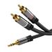 - 3.5mm stereo jack, 4-pin <=> 3x RCA jack (2x Audio/1x Video)