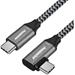 PremiumCord USB-C 2x zahnutý 90° kabel ( USB 3.2 GEN 2x2, 5A, 100W, 20Gbit/s ) hliníkové krytky konektorů, bavlněný oplet, 1m