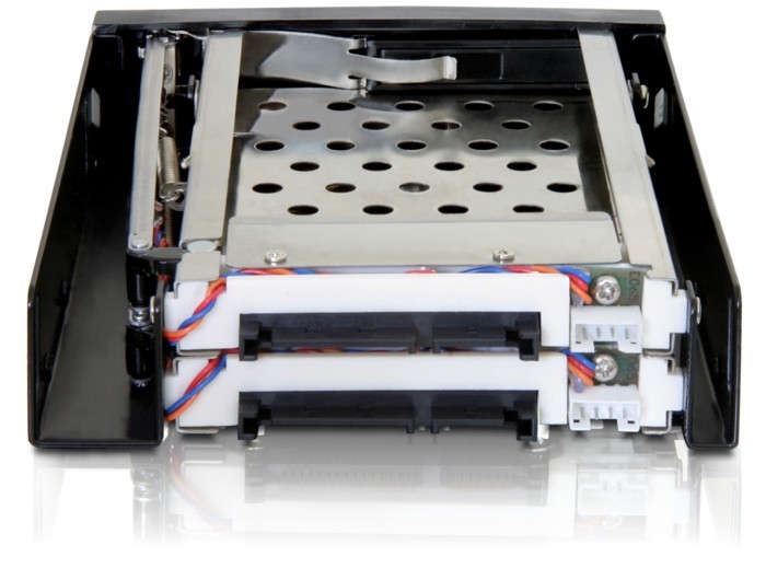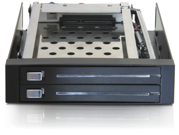 Tento kovový výměnný rámeček se instaluje do 3.5” pozice vašeho stolního PC a služí k připojení dvou 2.5” SATA pevných disků. Díky funkci hotswap je disky možné měnit během provozu počítače.