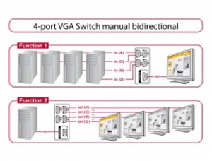 Tento VGA switch od Delocku je manuální obousměrný switch pro připojení různých zařízení s VGA portem. Tento switch nabízí dvě různé aplikace.
