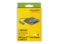 Čtečka karet od Delocku může být použita pro čtení a zápis na XQD paměťové karty. Čtečka karet může být připojena k PC nebo notebooku přes rozhranní USB Type-C™.