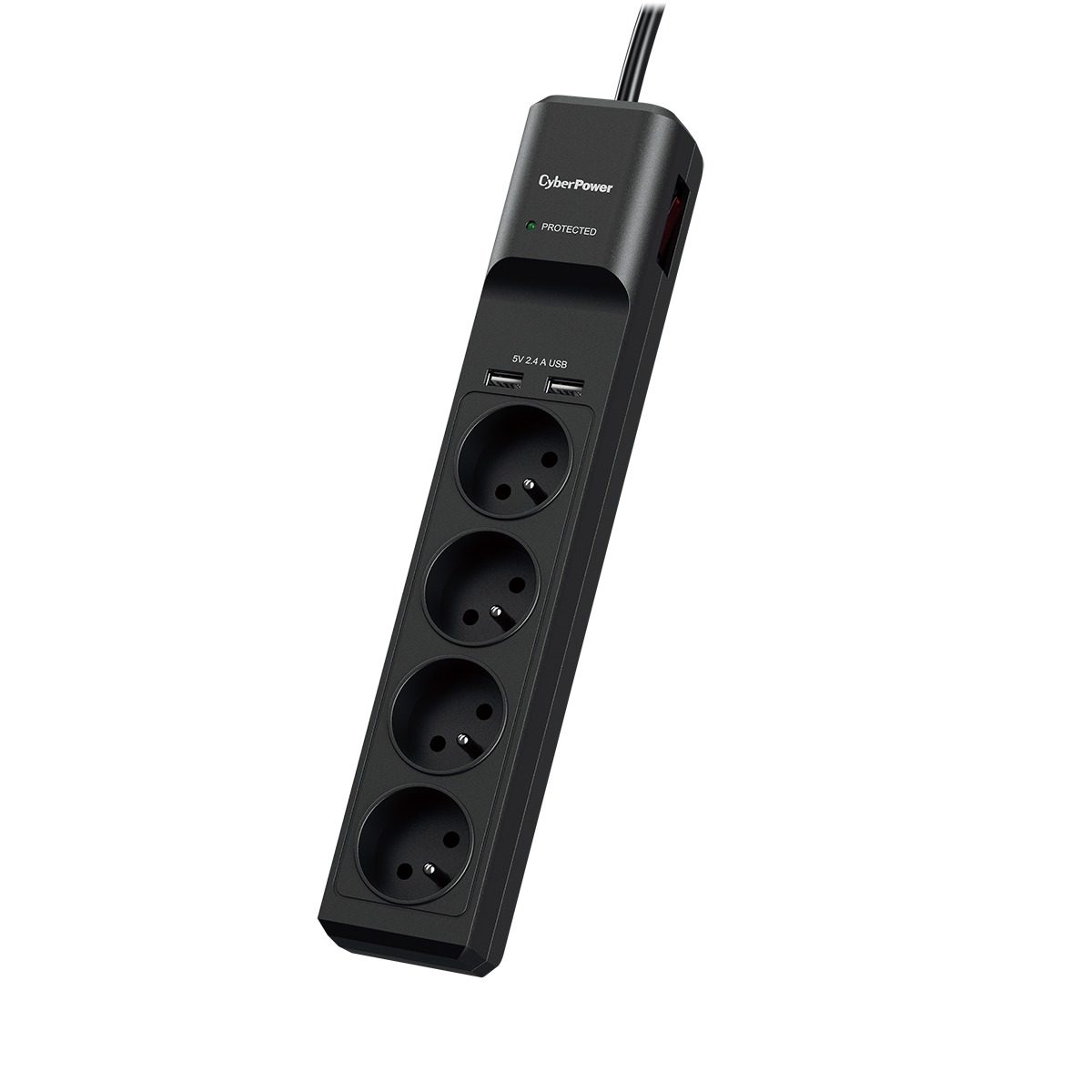 Přepěťovka CyberPower Surge protection se 4-mi českými zásuvkami a 2-mi USB porty