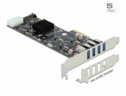 PCI Express card od Delocku rozšiřuje PC o čtyři externí USB 3.0 port. Každý port je podporován jedním chipem Renesas, který zajišťuje vysokou přenosovou rychlost dat. Můžete tak připojit různá zařízení USB jako jsou dokovací stanice, čtečky karet, externí HDD atd. Instalace slotu low profile je možná vzhledem k vertikálnímu směru portů USB 3.0. Specifikace • Konektor: externí: 4 x SuperSpeed USB (USB 3.2 Gen 1) Typ-A samice interní: 1 x PCI Express x4, V2.0 1 x napájecí konektor SATA 1 x Molex 4 pin napájecí konektor • Chipset: 4 x Renesas uPD720202 • Rychlost přenosu dat až: SuperSpeed 5 Gbps, Hi-Speed 480 Mbps, Full-Speed 12 Mbps, Low-Speed 1,5 Mbps • Možnost bootování Systémové požadavky • Linux Kernel 3.3 nebo vyšší • Windows 8.1/8.1-64/10/10-64 • PC s jedním volným PCI Express x4 / x8 / x16 / x32 slotem Obsah balení • Karta PCI Express s USB 3.0 • Záslepka do slotu • Uživatelská příručka Balení • Box |