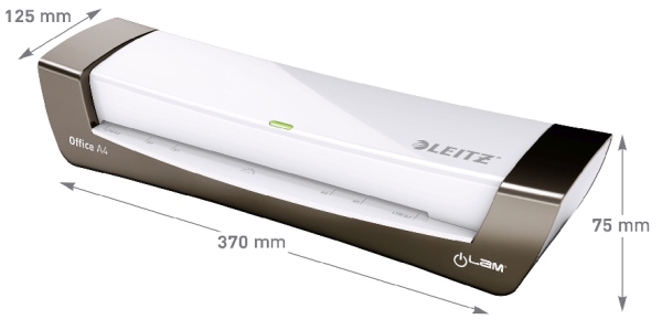 Kompaktní laminátor s rychlým zahřátím - ideální pro menší kancelář. Laminování bez zasekávání s excelentními výsledky, žádné složité nastavování Díky rychlému zahřátí je tento laminátor ideální pro menší množství dokumentů na zalaminování Stylový designový doplněk do každé moderní kanceláře - jednodušše se skladuje, pokud se nepoužívá Nízká spotřeba energie, automatické vypnutí po 30 minutách nepoužívání Pro kapsy od 80 do 125 mikronů 80 mikronovou kapsu A4 zalaminuje přibližně za 45 vteřin LED diody odpočítávají dobu zbývající pro zahřátí 2 roky záruka, CE certifikace Doporučeno používat s Leitz UDT laminovacími kapsami Rychlost laminace: max. 400 mm/min; stálá Teplota: max. 122° pro 80 mic; max 130° pro 125 mic Tloušťka laminovacích pouzder: 80(75)-125 mikronů Čas potřebný k zahřátí: 1 min Rozměry: (Š x V x H) mm: 370 x 75 x 125 Přibližný čas laminace (A4): 45 sec (A4 80 mikronů Záruka: 2 roky" |