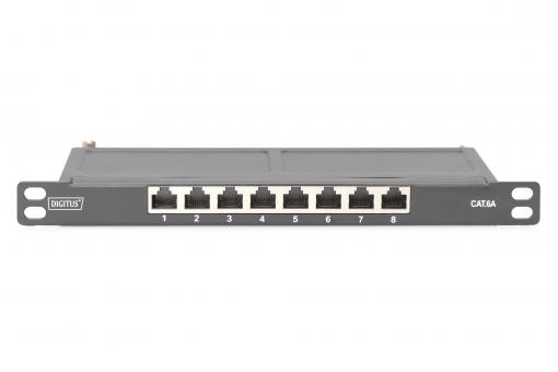 Patch panel CAT 6A, stíněný, 8portový 1 / 2U, 10 "montáž do stojanu, černá RAL 9005