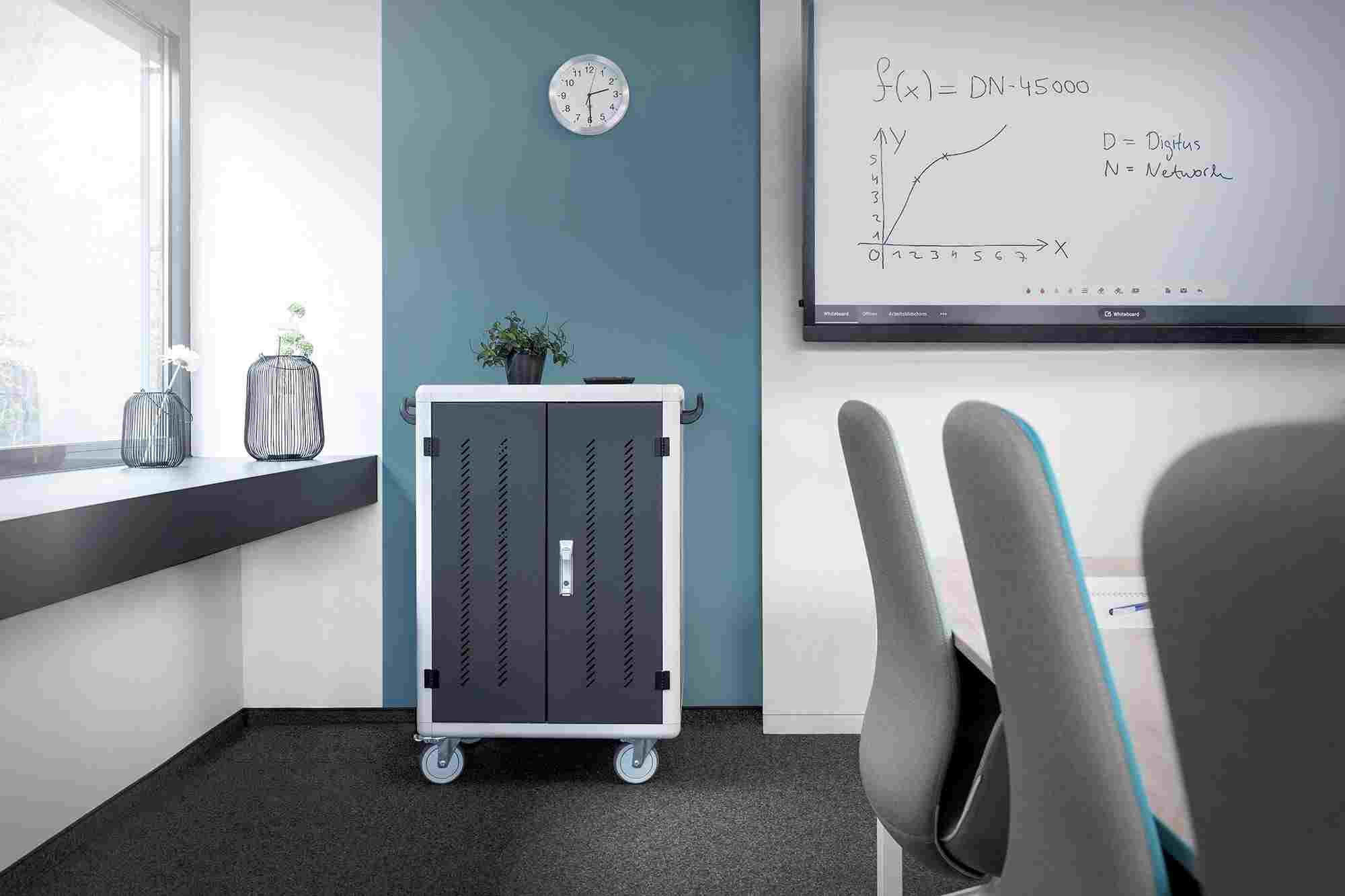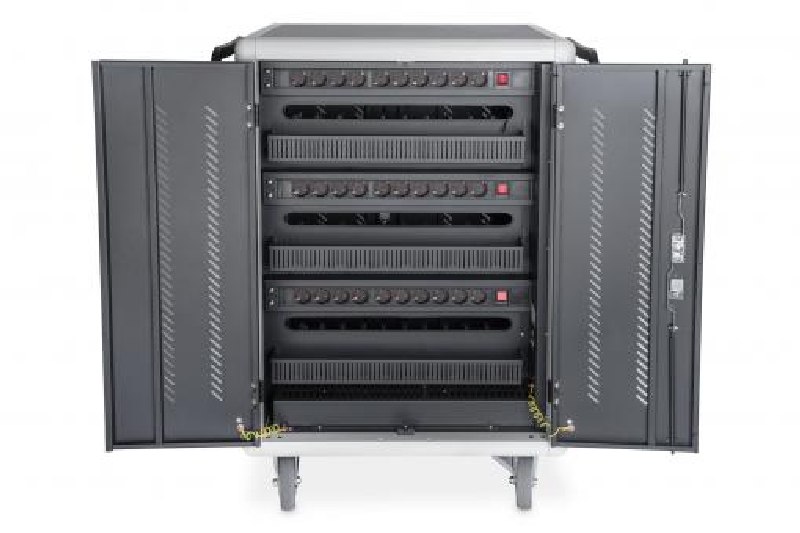 Mobilní nabíjecí skříňka, 30 nabíjecích stanic, 15,6", schw 1100 x 700 x 650 mm, vč. USB, PDU, ventilátor