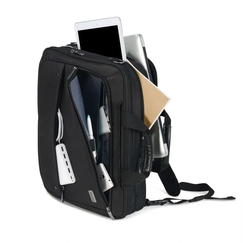 The Eco Top Traveller Dual SELEC is the intelligent top loader/backpack combination for environmentally conscious professionals. You can decide on the go if you'd rather have a shoulder bag or a backpack. If you want to wear the Eco Top Traveller Dual over your shoulder, you will love the stowable comfortable carry handle and removable padded shoulder strap. In the backpack version, the bag has stowable padded shoulder straps that can be adjusted in length. Your 14-15.6" notebook is triple-protected: with High-Density Foam (HDF) padding, perforated, lightweight EVA foam corner padding and an elastic strap. The padded compartment for tablets up to 12.9" protects against impact and is also equipped with Nylex inside. Generous as well as expandable storage space for your documents and other luggage in the spacious and lockable main compartment. The practical and easy-access insert pockets in the front pocket allow you to organise your personal equipment such as IDs, business cards, smartphones and portable chargers. An additional front pocket provides space for chargers and cables. The length-adjustable padded shoulder strap, the trolley fastening strap and the intelligent inner cable routing ensure perfect comfort when out and about. The Eco Top Traveller Dual SELECT is perfect for you if you are always on the go and want to support the recycling of PET bottles with an eco-friendly bag. Made of 12 recycled PET bottles Adjustable carry strap with comfortable shoulder padding Lockable notebook compartment, surrounded by High-Density Foam (HDF) and including EVA Corner Foam Protection Spacious main compartment with storage area for documents Padded slip pocket for tablets up to 12.9" Extra compartment for power bank and cables Front pocket with storage space for mobile accessories Smart inner cable management for mobile charging of your devices Retractable, padded shoulder straps, adjustable in length (backpack function) Trolley fastening strap Color black Material 300D recycled PET Max. Device Measurements (mm) 385 x 35 x 265 mm Product Measurements (mm) 430 x 140 x 310 mm Weight 1.03 kg Identifikační a kontaktní údaje výrobce DICOTA GmbH Fabrikstrasse 18 73277 Owen Germany Phone: +49 7021 72508 0 info@dct.group |