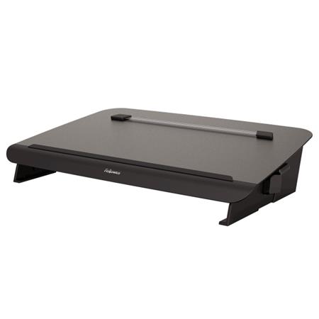• série HANA™ • moderní minimalistický design • 5 nastavení výšky a úhlu • výškové nastavení: 116, 134, 162, 188, 214 mm • stupně nastavení: 8, 14, 20, 26, 32° • skrytý zásobník na příslušenství s přístupem k nabíjení zařízení • magnetický úchyt pro držení papíru a pomoc při čtení • určeno pro formát papíru až A3• posuvná podložka vytváří ergonomickou oblast na psaní • barva černá • materiál kov • nosnost 5 kg • rozměry (vxšxh) 116-214 x 560 x 350 mm
