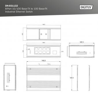 Průmyslový 8+1 port Fast Ethernet přepínač nespravovaný, 8 portů RJ45 10/100 Mb/s