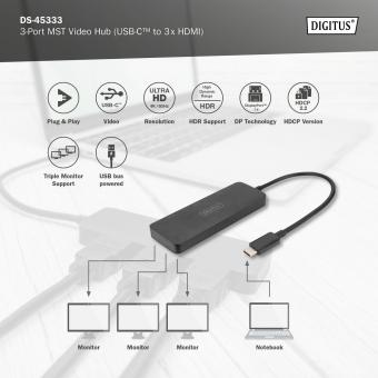 USB-C - 3x HDMI MST Video Hub DP 1.4, HDMI 2.0, 4K/60Hz