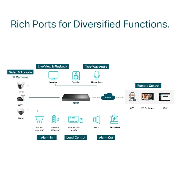 Síťové 32kanálové záznamové zařízení TP-Link VIGI NVR4032H slouží pro nepřetržité nahrávání videí 24 hodin denně po celých 7 dní v týdnu. Váš majetek, nemovitost i pozemek zůstanou v bezpečí a bude vždy monitorovaný. Zařízení podporuje mobilní aplikaci VIGI, která je vhodná pro vzdálené sledování dění, pro kontrolu uložených záznamů a pro správu kamer.