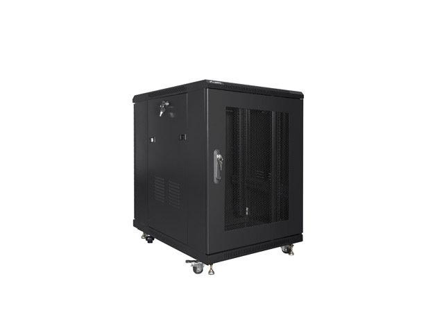 LANBERG Volně stojící skříň 19" 15U/600x800, síťované dveře, černá (RAL9004) (v rozloženém stavu)