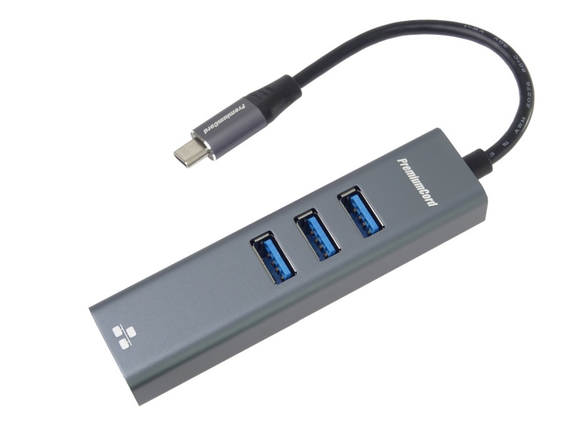 PremiumCord Adapter USB-C na Gigabit 10/100/1000Mbps + 3x USB3.0 konektor