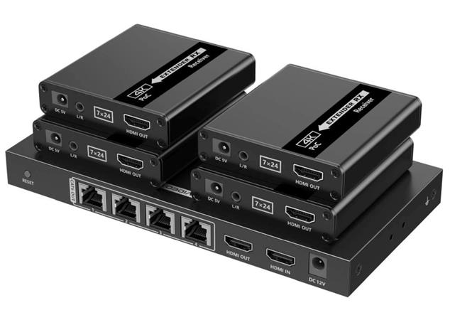 Můžete připojit čtyři HDMI obrazovky k jednomu HDMI zdroji signálu po kabelu CAT6/6a/7, Extender se skládá z jedné vysílací jednotky s lokálním výstupem HDMI a čtyř přijímačů, které se propojí CAT6/6a/7 kabelem s vysílačem. Splitter+extender umožňuje připojit dvě HDMI monitory na vzdálenost 70m a zobrazit až UHD 4K@30Hz - Komplet obsahuje vysílač + 4 přijímače - Vstup: 1x HDMI vstup (Type A) - Výstupy: 1x lokální výstup HDMI na vysílači, 4 x HDMI výstupy (Type A) na přijímačích - Propojení modulů kvalitním kabelem CAT6/6a/7,max.délka 70m, doporučujeme kabel s měděnými vodiči min. AWG23 ( například kód:sutpd6c3 ) - Podporuje 3D a rozlišení UHD 4K@30Hz a FULL HD 1080p - Podporuje HDMI2.0, kompatibilní s HDCP2.2 - Rezlišení: 4Kx2K@30Hz, 1080p ,1080i - Šířka pásma (MHz): 340 MHz - Max. datový přenos (Gb / s): 4.95 - Podporuje standardy: Dolby Digital/Plus, Dolby TrueHD, DTS-HD Master Audio+, DVD-Audio, SA-CD other supported standards: 3D, HDCP, CEC, Full HD (1080i/p), HD ready (720i/p) - Přenáší obraz i zvuk - Přenáší IR signál, podporuje použití IR ovladačů - Podporuje manuální nastavení EDID - Kovové pouzdro pro lepší odvod tepla - Set obsahuje napájecí adaptér na 1x 230V/5V (který napájí všechny jednotky) - Rozměry: TX: 190(L) x 95.9(W) x 23.9(H) mm RX: 71.6×66.6×22.6mm - Balení v papírové krabičce Návod k zapojení: 1) Vstup HDMI splitteru zapojte HDMI kabelem do zdroje signálu a výstup zapojte do zobrazovací jednotky nebo monitoru. 2) Propojte vysílací jednotku (transmiter) s přijímacími jednotkami (receiver) kvalitním kabelem CAT6/6a/7, doporučujeme kabel s měděnými vodiči min. AWG23 ( například kód:sutpd6c3 ) 3) Zapojte napájecí adaptery do zásuvky 230V a do zdířky DC 5V. Pokud se obraz po zapojení rozbočovače nezobrazí ihned po zapojení, vyčkejte cca 30s než dojde k rozpoznání HDMI signálu. |