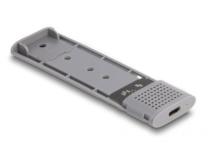 Tento kryt značky Delock umožňuje instalaci M.2 PCIe NVMe SSD nebo SATA M.2 SSD ve formátu 2280, 2260, 2242 a 2230. Lze jej připojit kabelem USB k PC nebo k notebooku. Robustní kovový kryt s chladicími lamelami zajišťuje optimální teplotu paměti. Kombo pouzdro Velkou výhodou tohoto krytu Delock M.2 je, že do pouzdra lze vložit jak disky SATA, tak i PCIe (NVMe) M.2 SSD. Paměť bude automaticky rozpoznána čipovou sadou a pak ji bude lze používat. Instalace SSD bez nástrojů Speciální funkcí tohoto pouzdra je, že k instalaci SSD M.2 není potřeba žádných nástrojů. Vnitřní díl lze vytáhnout stlačením tlačítka, načež bude SSD vložen do slotu a přitlačen gumovou spojkou k desce. Specifikace Konektor: externí: 1 x USB 10 Gbps USB Type-C™ samice interní: 1 x M.2 klíč M slot Chipset: Realtek RTL9210B Podporuje M.2 moduly ve formátu 2280, 2260, 2242 a 2230 s klíčem M nebo klíčem B+M na základě SATA nebo PCIe (NVMe) Maximální výška komponentů na modulu: 1,5 mm je podporována aplikace oboustraných modulů Podporuje NVM Express (NVMe) Možnost bootování Rychlost přenosu dat 10 Gbps LED indikující napájení a přístup Kovová skříňka Rozměry (DxŠxV): cca. 110 x 38 x 13 mm Hot Plug, Plug & Play Systémové požadavky Android 10.0 nebo vyšší Chrome OS Linux Kernel 5.11 nebo vyšší Mac OS 11.2.3 nebo vyšší Windows 10/10-64/11 iPad Air (4-mé generace) nebo vyšší iPad Pro (3-mé generace) nebo vyšší Surface Pro 7 PC nebo notebook s volným USB Type-C™ portem PC nebo notebook s volným portem Thunderbolt™ 3 Obsah balení • Externí pouzdro M.2 • Kabel USB-C™ samec na USB-C™ samec (s adaptérem na USB Typu-A samec), délka cca. 45 cm • 1 x tepelně vodivá podložka • 1 x tepelně vodivá destička • 2 x gumová špička • Uživatelská příručka Balení Kartonová krabice |