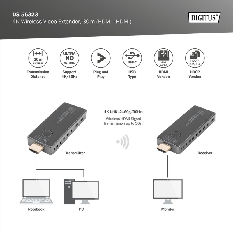 Sada 4K Wireless HDMI Extender Set, 30 m HDMI - HDMI