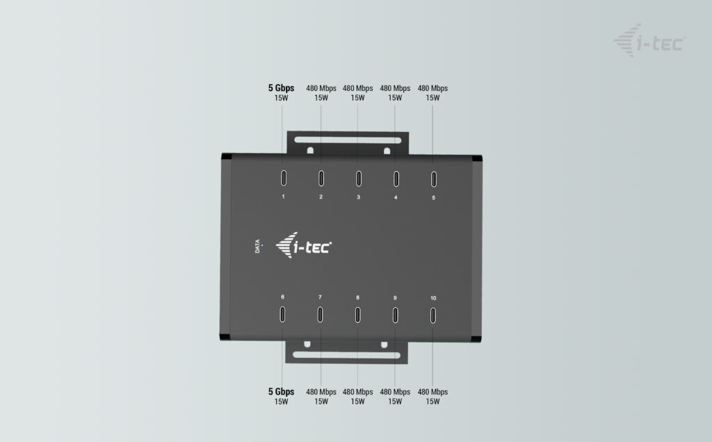 I-tec USB-C/USB-A Metal Charging+Data HUB, 15W per port, 10x USB-C, 180W