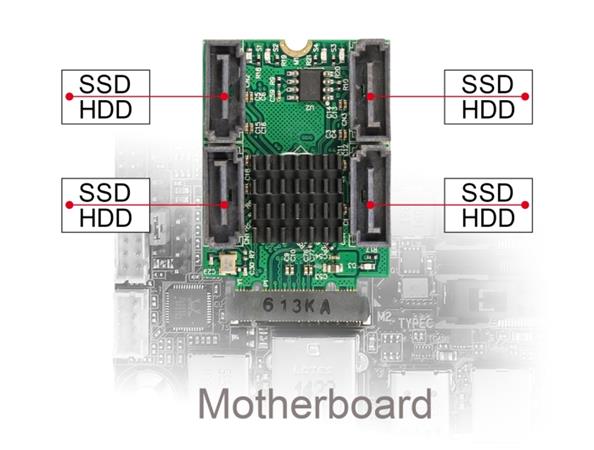 Tento Delock konvertor rozšiřuje systém o čtyři SATA porty. Pokud používáte vice jak jeden SATA port, je tady možnost užití různých RAID módů. Převodník podporuje funkci hyperduo. Při téhle funkci lze kombinovat SSD a HDD, a využívat výhod obou datových nosičů, rychlost SSD a kapacitu HDD. Technické detaily Konektor: 1 x M.2 klíč B+M samec 4 x SATA 6 Gb/s 7 pin samec Chipset: Marvell Rozhraní: PCIe 2.0 Provedení: M.2 3042 Vhodný pro slot M.2 s klíčem M nebo B+M na základě PCIe Rychlost přenosu dat až 6 Gb/s Podporuje RAID 0, 1, 10, JBOD, HyperDuo Virtual Disk (Safe/Capacity) Podporuje HDD a SSD Podpora Native Command Queuing (NCQ) Možnost bootování Rozměry (DxŠxV): cca. 42 x 30 x 13 mm Systémové požadavky Linux Kernel 5.15 nebo vyšší Windows 10/10-64/11 Windows Server 2019 Jeden volný slot M.2 key M nebo key B Obsah balení Převodník Uživatelská příručka Balení Box |