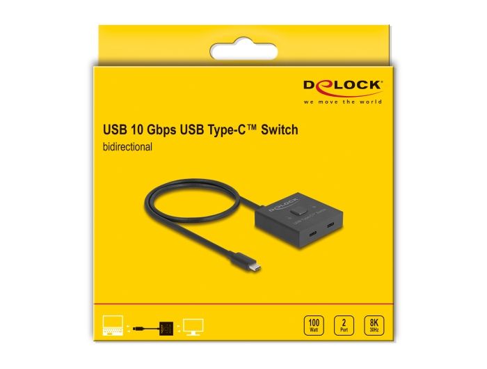 Tento USB Type-C™ switch od Delocku je manuální obousměrný switch pro připojení různých zařízení s portem USB Type-C™. Tento switch nabízí dvě různé aplikace.
