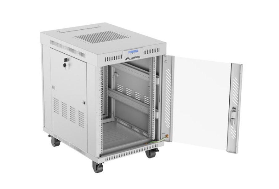 LANBERG Volně stojící skříň 19" 15U/600x800 LCD skleněné dveře šedá