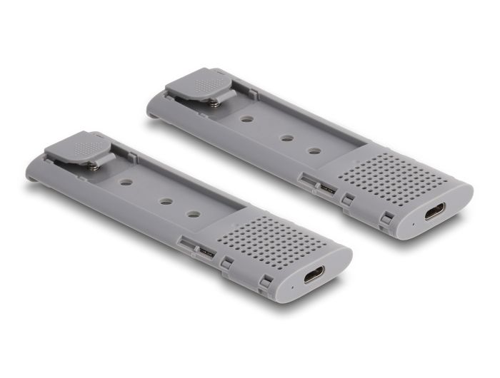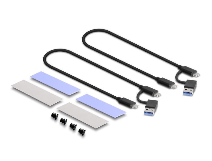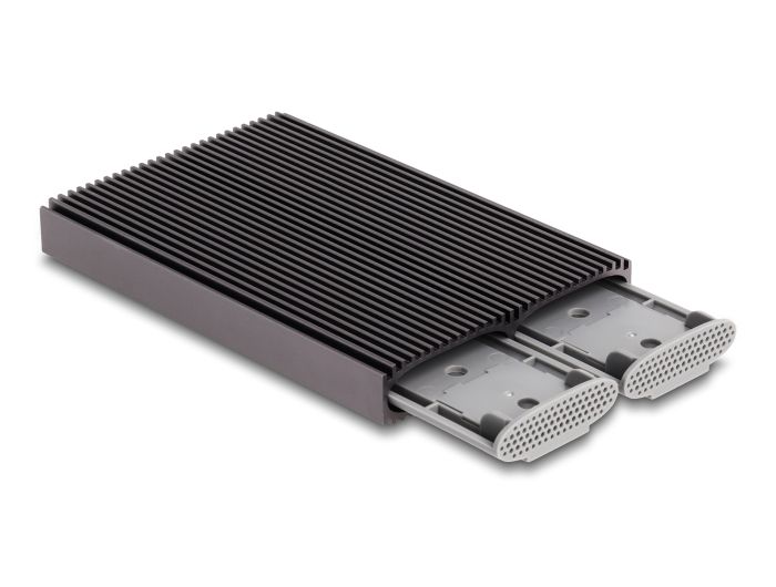 Toto pouzdro značky Delock umožňuje instalaci dvou SSD M.2. Používat a provozovat lze buďto SSD M.2 PCIe NVMe nebo SSD M.2 SATA ve formátech 2280, 2260, 2242 a 2230. Robustní kovový kryt s chladicími lamelami zajišťuje optimální teplotu paměti. Kombo pouzdro Velkou výhodou tohoto krytu Delock M.2 je, že do pouzdra lze vložit jak disky SATA, tak i PCIe (NVMe) M.2 SSD. Paměť bude automaticky rozpoznána čipovou sadou a pak ji bude lze používat. Instalace SSD bez nástrojů Speciální funkcí tohoto pouzdra je, že k instalaci SSD M.2 není potřeba žádných nástrojů. Vnitřní díl lze vytáhnout stlačením tlačítka, načež bude SSD vložen do slotu a přitlačen gumovou spojkou k desce. Technické detaily Konektor: externí: 2 x USB 10 Gbps USB Type-C™ samice interní: 2 x M.2 klíč M slot Chipset: Realtek RTL9210B Podporuje M.2 moduly ve formátu 2280, 2260, 2242 a 2230 s klíčem M nebo klíčem B+M na základě SATA nebo PCIe (NVMe) Maximální výška komponentů na modulu: 1,5 mm je podporována aplikace oboustraných modulů Podporuje NVM Express (NVMe) Možnost bootování Rychlost přenosu dat 10 Gbps 2 x LED indikující napájení a přístup Kovová skříňka Rozměry (DxŠxV): cca. 110 x 74 x 13 mm Hot Plug, Plug & Play Systémové požadavky Android 10.0 nebo vyšší Chrome OS Linux Kernel 5.11 nebo vyšší Mac OS 11.2.3 nebo vyšší Windows 10/10-64/11 iPad Air (4-mé generace) nebo vyšší iPad Pro (3-mé generace) nebo vyšší Surface Pro 7 Zařízení s volným portem USB Type-C™ nebo volný port Thunderbolt™ 3 nebo Thunderbolt™ 4 nebo Jeden volny USB Typ-A port Obsah balení Externí pouzdro M.2 2 x Kabel USB-C™ samec na USB-C™ samec (s adaptérem na USB Typu-A samec), délka cca. 45 cm 2 x tepelně vodivé podložky 2 x tepelně vodivá destička 4 x gumová špička Uživatelská příručka Balení Kartonová krabice |