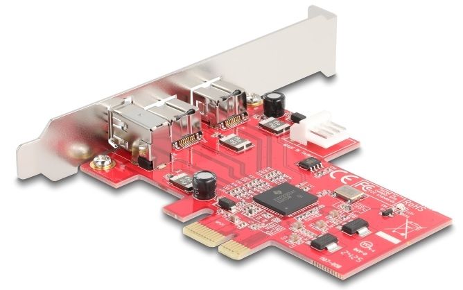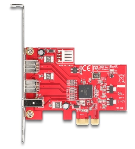 Tato PCI Express karta od Delocku rozšiřuje PC o dva externí FireWire 800 porty a jeden externí FireWire 400 port. Ke kartě pak mohou být připojena různá zařízení s portem FireWire, jako jsou externí disky, digitální kamery a fotoaparáty, adaptéry apod. Karta PCIe má integrovánu nativní čipovou sadu PCI Express, ne bridge čipovou sadu. Vnitřní konektor napájení Čtyřpinový konektor napájení na kartě lze použít tehdy, když mají zařízení FireWire vyšší požadavky na výkon. Za tímto účelem je v obsahu balení přiložen vhodný adaptér, který lze připojit k různým zdrojům napájení. Technické detaily Konektor: 2 x FireWire 800 1394B 9 pin 1 x FireWire 400 1394A 6 pin 1 x PCI Express x1, V1.1 1 x 4 pinový napájecí konektor Chipset: Texas Instruments XIO2213B Podporuje OHCI verze V1.0 a 1.1 Hot Swap, Plug & Play Systémové požadavky Linux Kernel 5.19 nebo vyšší Windows 10/10-64/11 Windows Server 2019 PC s volným PCI Express slotem Obsah balení Karta PCI Express Standardní záslepka Napájecí kabel Uživatelská příručka Balení Kartonová krabice |