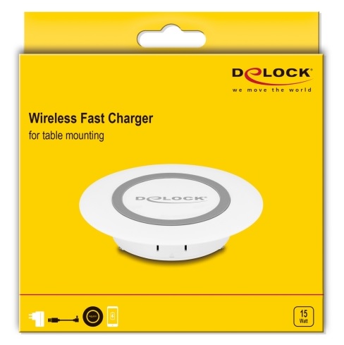 S touto nabíjecí podložkou značky Delock lze snadno bezdrátově nabíjet mobilní zařízení. Díky převodu energie indukcí už nejsou potřeba nabíjecí kabely a konektory jsou chráněny. Pro vhodně vybavené inteligentní telefony podporuje nabíječka rychlé nabíjení výkonem až 15 W. Určeno pro stolní montáž Nabíječku je možno vložit do stávající prohlubně ve stole. Toto je praktické a prostorově úsporné řešení, které umožňuje snadné nabíjení mobilních zařízení. Technické detaily Konektor: 1 x USB Type-C™ samice Nabíjecí proud: 5,0 V / 1,0 A (5,0 W), 7,5 V / 1,0 A (7,5 W), 9,0 V / 1,12 A (10,0 W), 12,0 V / 1,25 A (15,0 W) Frekvenční rozsah: 110 - 205 kHz Vysílací výkon: max. 15 W Montážní průměr: 60 mm / 80 mm Montážní hloubka: 20 mm Materiál: plast Barva: bílá Rozměry: Průměr cca. 9,0 cm, výška cca. 1,9 cm Systémové požadavky Napájecí zdroj s USB-A samice a 12,0 V / 1,5 A / 18,0 W Obsah balení Nabíjecí kolébka Adaptér z 80 mm na 60 mm Pravoúhlý kabel USB-A na USB Type-C™, délky cca. 2 m Uživatelská příručka Balení Kartonová krabice |