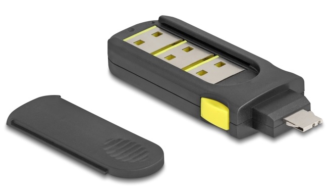 S touto sadou blokovacích portů USB značky Delock lze zásuvky USB Typu-A zajistit proti neoprávněnému přístupu. Blokovače portů umístěné uvnitř nástroje se umístí do hrotu a vtlačí do portu USB, čímž zásuvku USB zablokují. Touto sadou lze zablokovat celkem 4 portů USB Typu-A. Přístup kabelů a USB portů pak už není možný. K odemčení tohoto zámku je potřeba použít dodaný nástroj. Technické detaily Vhodné pro všechny standardní porty USB Typ-A samice Barva nástroje: černá / žlutá Barva blokovače portů USB: stříbrná / žlutá Rozměry nástroje (DxŠxV): cca. 70 x 22 x 9 mm Obsah balení 4 x blokátory portu USB 1 x uzamykací nástroj Balení Plastová taška se zipem |