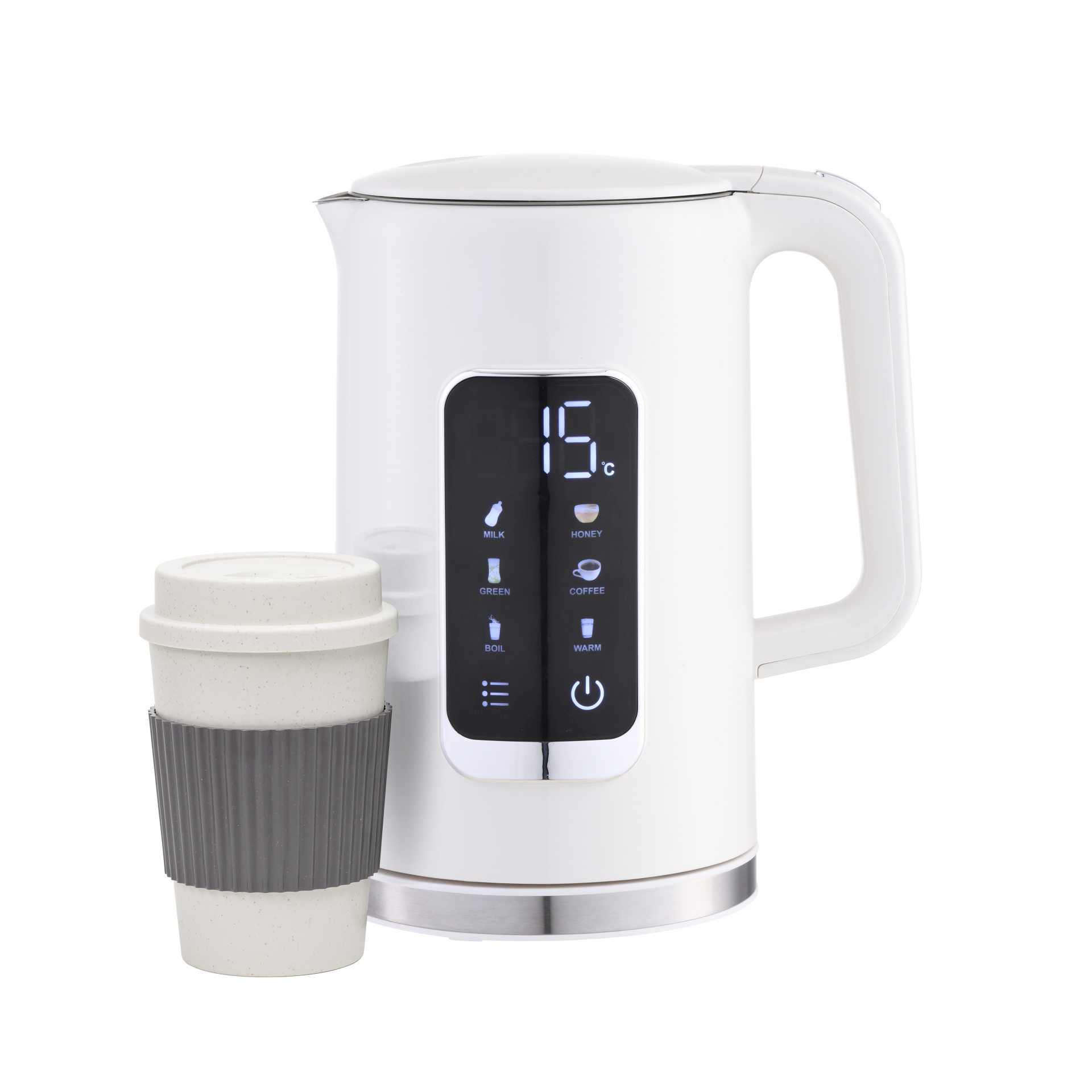 "Rychlovarná konvice vyrobená z vysoce kvalitních materiálů zajišťuje odolnost a snadné čištění. Zapomeňte na náhodné ohřívání rukojeti levných a nekvalitních konvic – naše konvice má pouzdro, které se nezahřívá, což zvyšuje bezpečnost používání. Díky přehlednému digitálnímu displeji a pěti úrovním teploty, můžete přesně přizpůsobit teplotu vybranému nápoji. Funkce udržování teploty vám umožní vychutnat si horký nápoj i po dlouhé době.