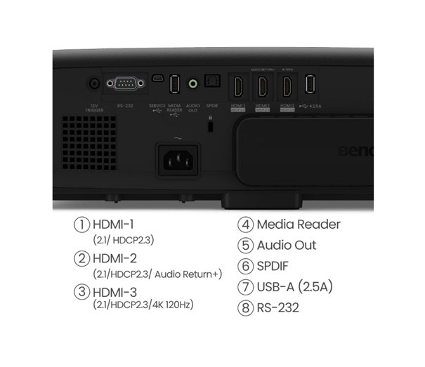 Technické údaje - Zobrazení Jas (ANSI lumenů) 3200 Rozlišení 4K UHD (3840 × 2160) Nativní poměr stran 16 : 9 Kontrastní poměr (FOFO) 3 000 000 : 1 Počet zobrazitelných barev 30 bitů (1,07 miliardy barev) Světelný zdroj 4LED Životnost zdroje světla a. Normální režim 20 000 hod., b. Režim ECO 30 000 hod. - Optické parametry Projekční poměr 1.15 ÷ 1.50 Poměr zoomu 1,3× Objektiv F/# 1.8 - 2.25 mm, f 17.02 (Wide)~22.21(Tele) Korekce lichoběžníkového zkreslení 2D, ± 30 stupňů ve svislém směru, ± 30 stupňů ve vodorovném směru Vertikální posun objektivu 0%-60% Horizontální posun objektivu max +15%~-15% H @ 20.9% V - Obraz Pokrytí DCI-P3 100% Pokrytí Rec. 709 100% Režimy obrazu AI Kino, HDR AI Kino, 3D, Jasný, Kino – vysoký jas, Kino, REŽIM FILMMAKER MODE, REŽIM FILMMAKER MODE HDR, HDR10, HDR10+, HLG, ISF Day, ISF Night, Uživatel -Kompatibilita Zpoždění na vstupu: 6.5ms (1080P 240Hz), 13 ms (1080P 120 Hz), 17,9 ms (1080P 60 Hz), 17,9 ms (4K 60 Hz) Podporované rozlišení: VGA (640 × 480) až 4K UHD (3840 × 2160) Horizontální frekvence: 15K~270KHz Vertikální snímková frekvence: 23~240Hz - Konektory Vstup HDMI: HDMI-1 (2.1/HDCP2.3) (4K 60Hz/ALLM), HDMI-2 (2.1/HDCP2.3) (4K 60Hz/ALLM/Audio Return+), HDMI-3 (2.1/HDCP2.3)(4K 120Hz *downscaling to 1080p 120Hz), (x3), HDMI – interní (2.0b/HDCP2.2) USB Type A: USB Type A-2 (2.0/Napájení 1.5A/Čtečka/Upgrade FW), (x2), USB Type A-3 (2.0 / napájení 2,5 A) USB Type Mini B: (x1), USB Type Mini B-1 (servisní) Vstup RS232 (DB, 9 pinů): (x1) Spínací napětí 12 V stejnosm. (3,5mm konektor): (x1) - Zvuk Reproduktor: (x1), 5 W Výstup zvuku (3,5mm mini konektor): (x1) Zpětný zvukový kanál HDMI: Yes, eARC, Dolby Atmos S/PDIF: Vícekanálový, RAW - Prostředí Provozní teplota: 0 – 40 °C Napájení: 100 až 240 V stř., 50/60 Hz Typická spotřeba energie (110 V): 330W Spotřeba energie v pohotovostním režimu: <0,5 W Hlučnost (typ./eko.) (dB): 30/29 -Příslušenství Adaptér pro Android TV_ QS02, (standardně) Dálkový ovladač s baterií: RCI074 Napájecí kabel (podle regionu): x1 (3,0 m) 3D brýle: (volitelně) Stručná příručka: (x1) 21L Krytka objektivu: Ano Univerzální stropní držák: CM00G3, (volitelně) - Chytré funkce Integrovaný operační systém: Ano, Android 11.0 Bluetooth: Ano, Bluetooth 5.0 Standard Wi-Fi: 802.11 a/b/g/n/ac (2,4 GHz / 5 GHz) Bezdrátová projekce: AirPlay, Google Cast - Rozměry a hmotnost Rozměry (Š × V × H) (mm): 420.5 x 135.3 x 312.1 Čistá hmotnost (kg): 6.1 Rozměry (Š × V × H) (palce): 16.56 x 5.31 x 12.28 Čistá hmotnost (lb): 13.45 - Projekční systém: DLP |